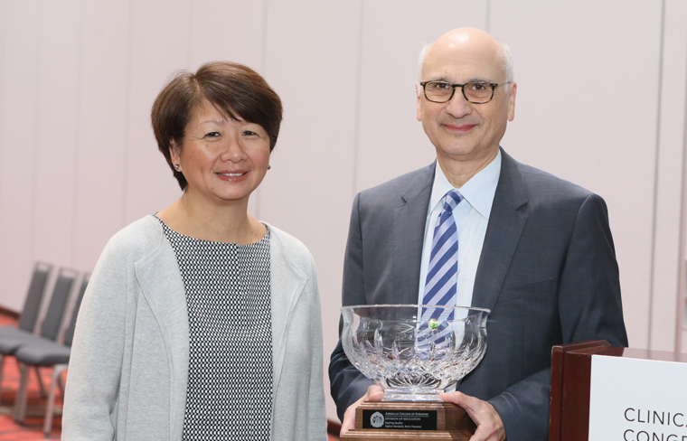 Outgoing ACS President Ronald V. Maier, MD, FACS, FRSEd(Hon), FCSHK(Hon), FCCS(Hon), presents the ACS Distinguished Service Award to